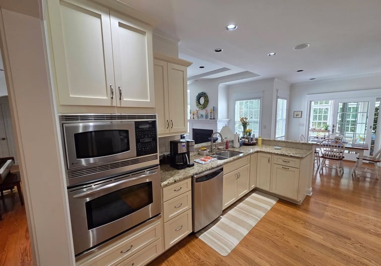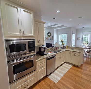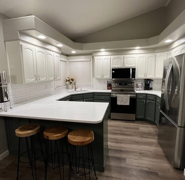 Transforming our kitchen cabinets to a luxurious off-white has elevated our space, offering a sleek, new kitchen